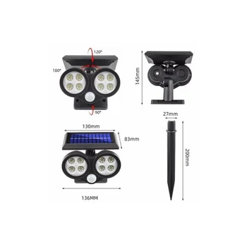 Napelemes és mozgásérzékelős kerti COB LED lámpa, 64 leddel - LF1906B - MS-785