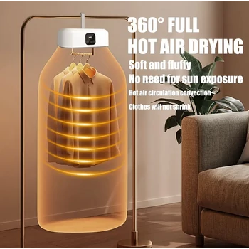 Kompakt hordozható ruhaszárító 360°-os meleg levegő keringtetéssel érintőkijelzővel